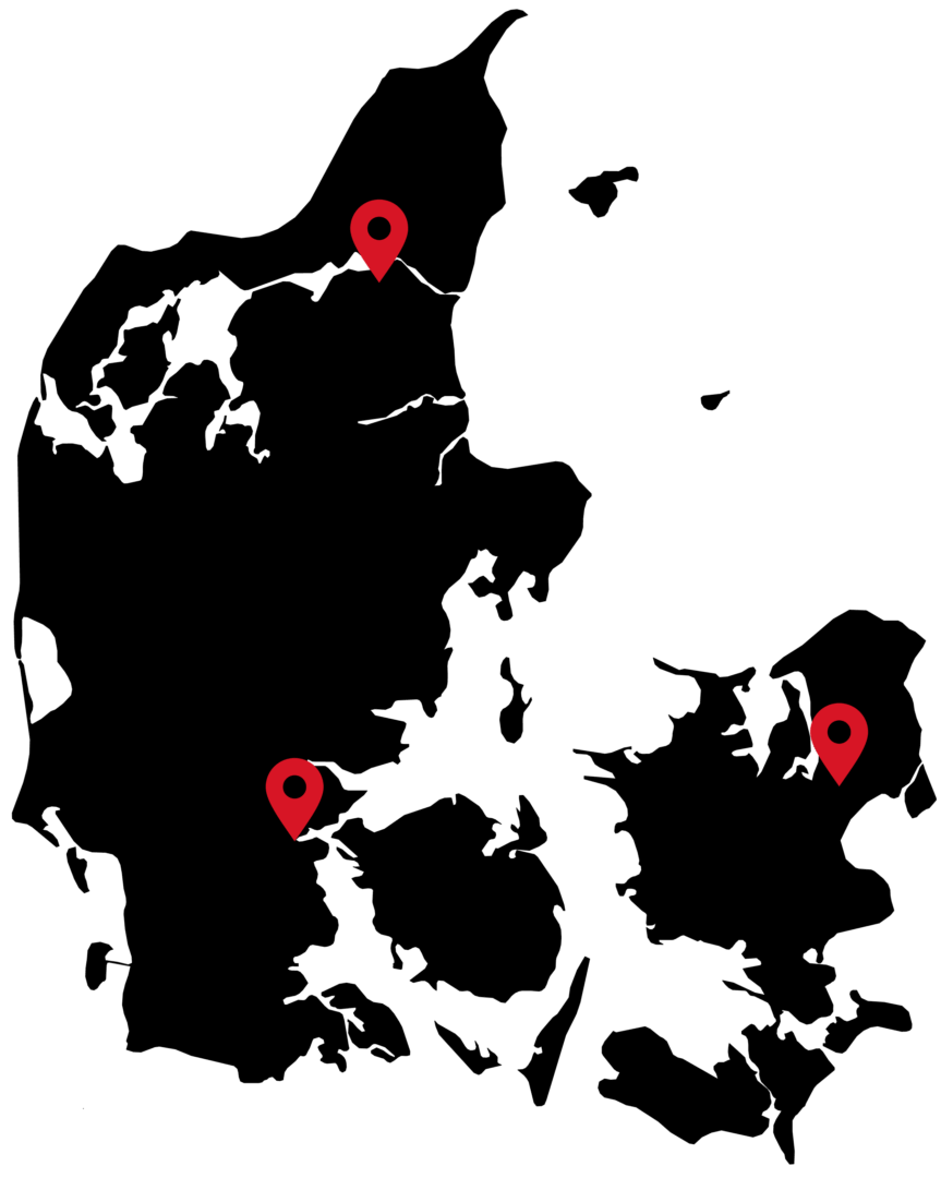 Med afdeling i Roskilde og Aalborg befinder vi os, indenfor en rimelig afstand, tæt på dig.